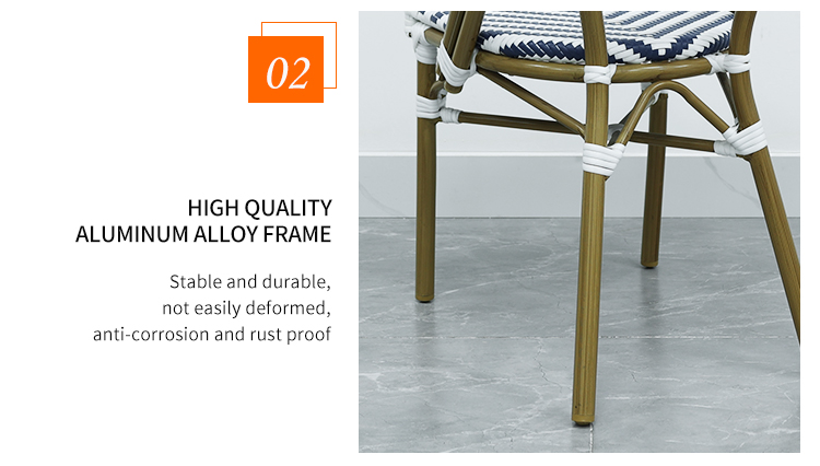 BP3227 French Style Outdoor Rattan Dining Chair Garden Furniture Patio Aluminium Frame French Bistro Coffee Chair for CafeMOQ :