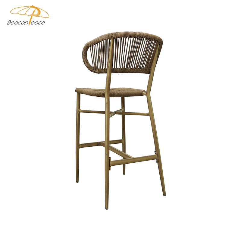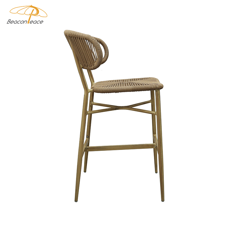 BP8703 Modern Cafe Outdoor Furniture Aluminium Frame Brush Wood Grain High Stool Bistro Dining Bar Chair |