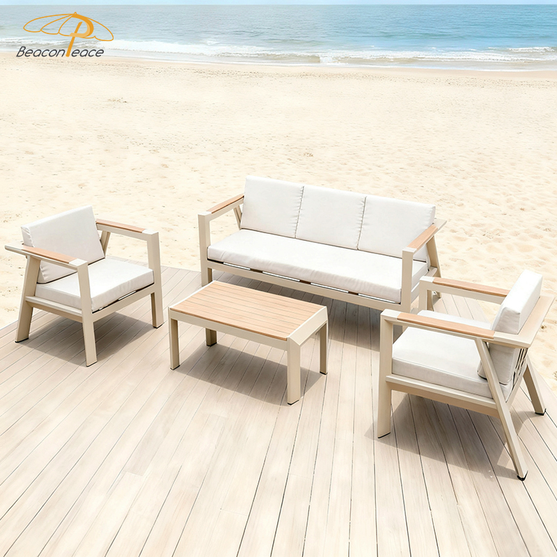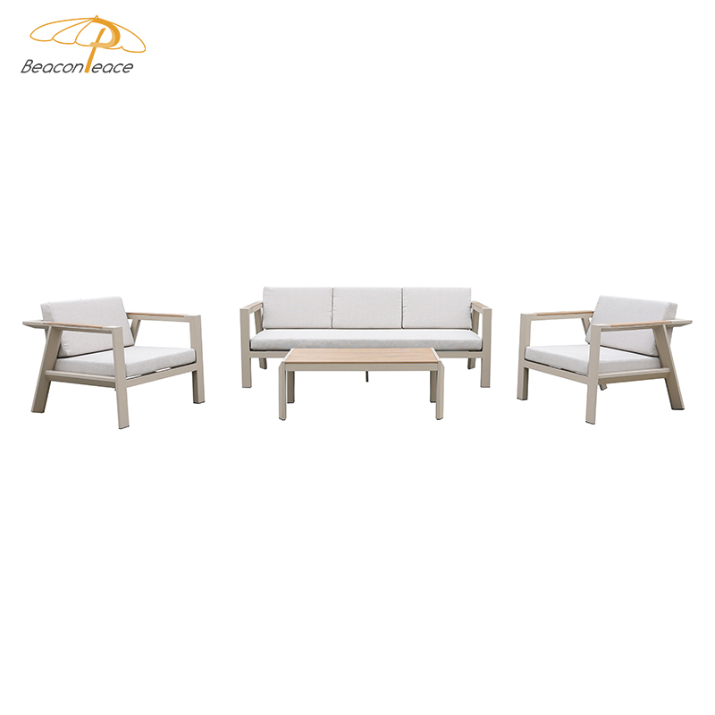 BP3141-PW Modern Nordic Outdoor Garden Furniture Resort Plastic Wood Decor Aluminium Patio Sofa Set |