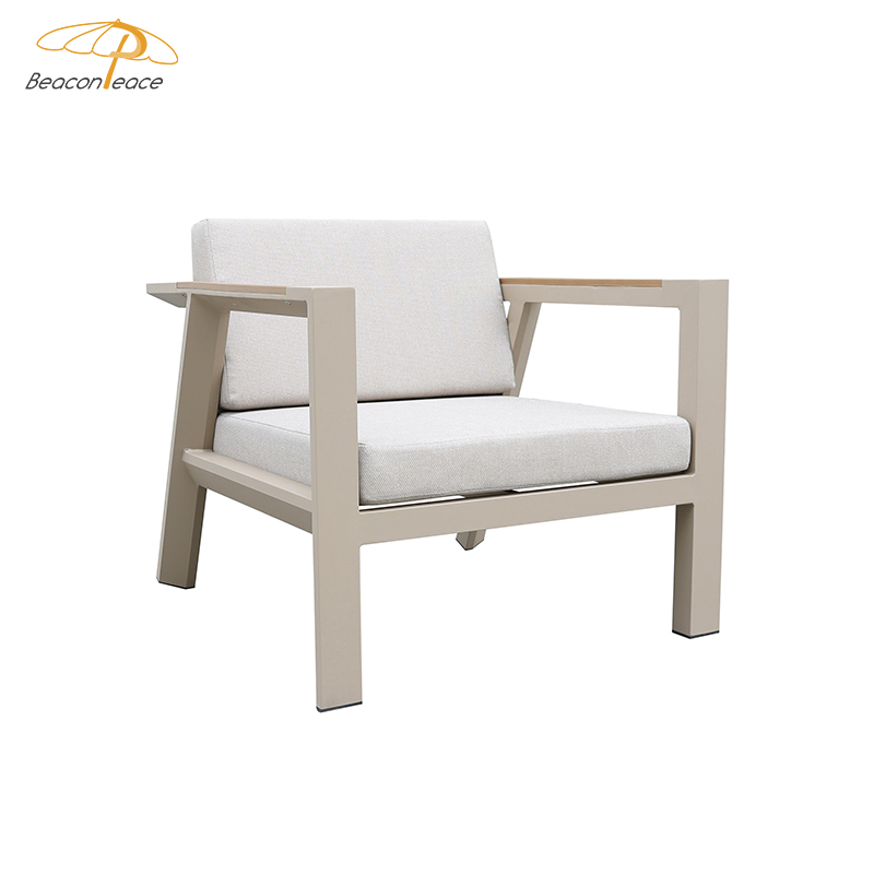 This BP3141-PW outdoor sofa set features a high-quality aluminum alloy frame—a structure that is sturdy, lightweight, and rust-resistant—effortlessly withstanding the dampness and sun exposure typical of outdoor environments without deforming over time. The sofa armrests and coffee table tabletop are crafted from carefully selected poly-wood material, perfectly replicating the natural texture of solid wood while offering superior resistance to water, moisture, corrosion, insects, weathering, and cracking. Paired with plush, comfortable cushions, this set strikes an ideal balance between aesthetic appeal and practicality. It is perfectly suited for a variety of outdoor settings—including courtyards, patios, and gardens—helping you create a durable, low-maintenance, and delightfully comfortable outdoor leisure space.