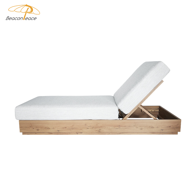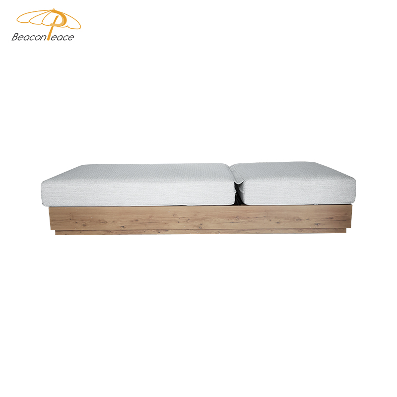 This outdoor bed is made of high-quality aluminum alloy frame, which is lightweight and durable. The heat-transferred wood grain base gives it a natural and elegant appearance, perfectly integrating into any outdoor environment. The adjustable back design allows you to easily find the most comfortable angle, and the comfortable sofa cushions provide soft support, allowing you to enjoy your leisure time in the sun.