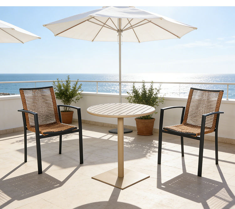Table:aluminum frame with powder coated finish Chair:aluminum frame+outdoor rope weaving리드타임 :