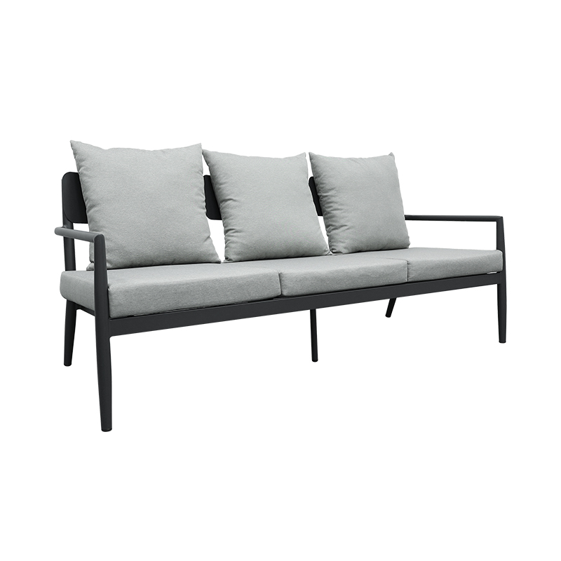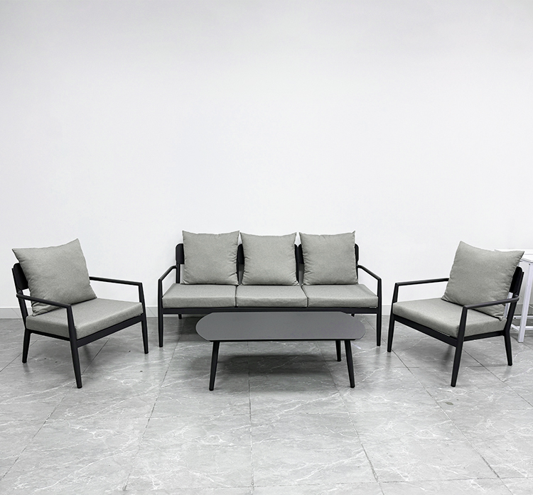 This aluminum alloy sofa is made with a high-quality aluminum alloy frame, making it lightweight and easy to move, facilitating flexible space arrangement. It also boasts excellent corrosion resistance, making it suitable for various outdoor environments. Furthermore, it features soft and thick cushions that provide excellent back support and a comfortable seating experience, ideal for extended use. The cushions are made of waterproof material, ensuring they remain dry even in rainy weather. The combination of two single sofas and one three-seater sofa offers flexibility to adapt to different occasions and needs.