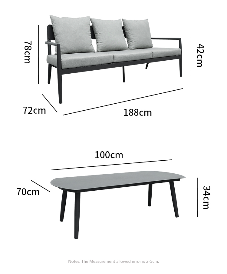 Sofa:Frame:Powder Coated Finished Alum Tube Table: T4mm Full Aluminum |