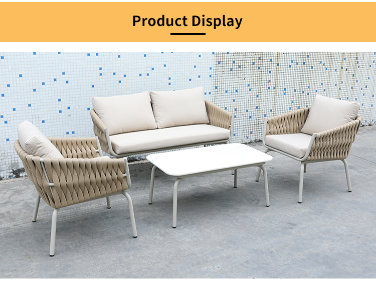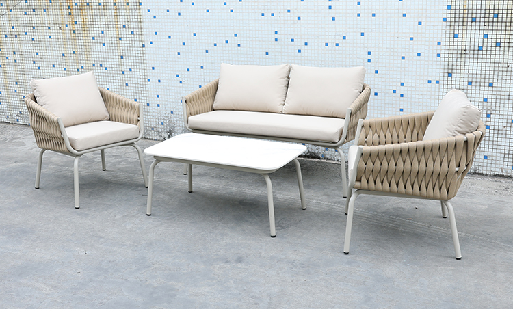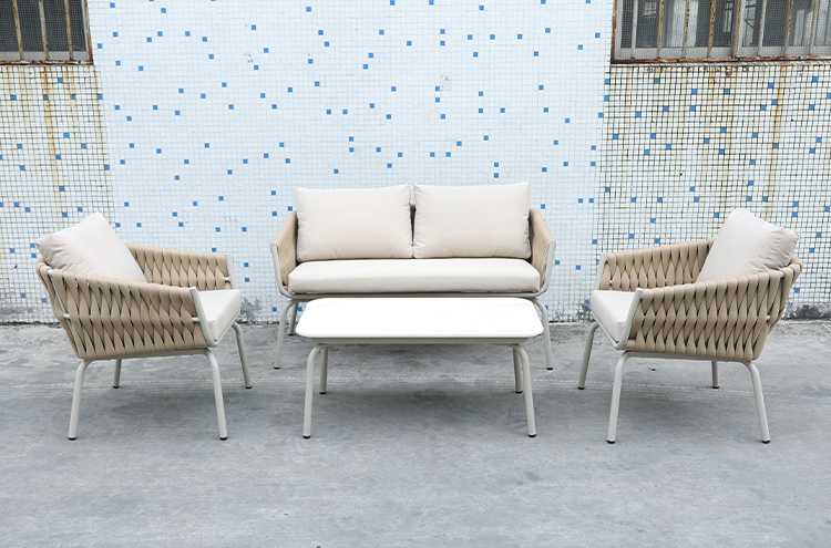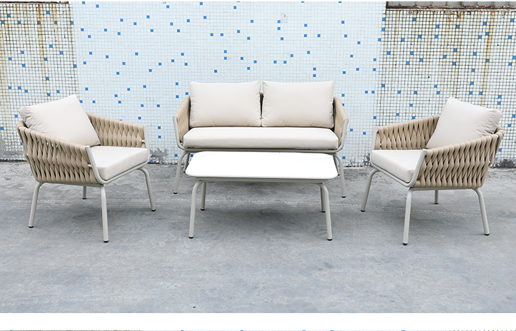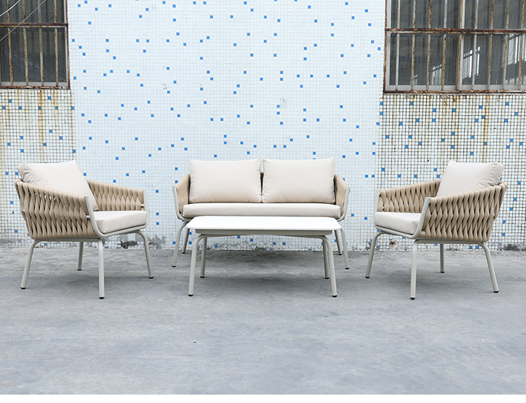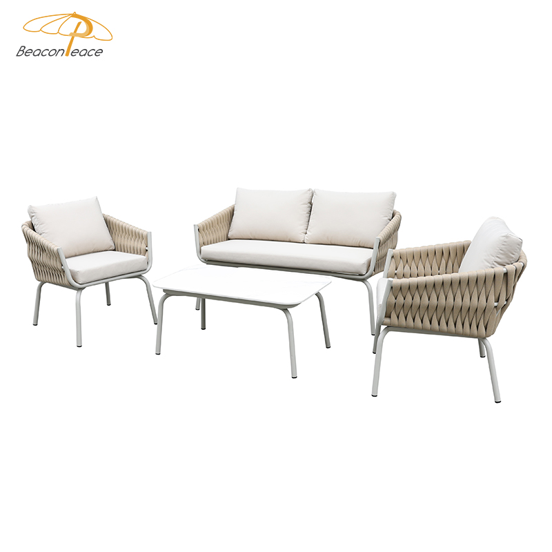 BP3077 Nordic Outdoor Patio Furniture Aluminium Frame Rope Woven 4 Pieces Garden Sofa Set |