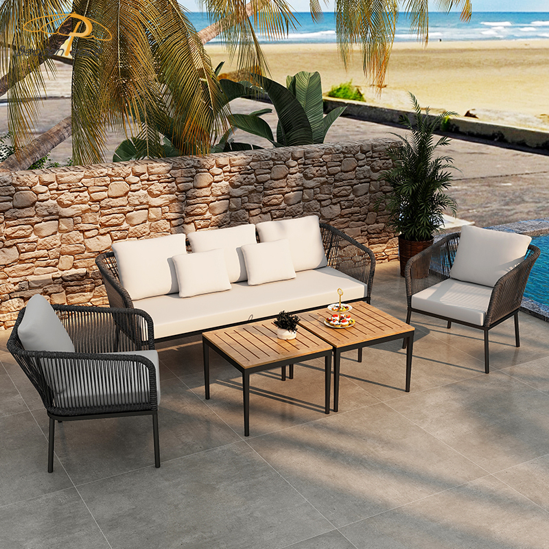BP5303 Waterproof Outdoor Patio Furniture Aluminium Frame Rope Rattan Woven Garden Sofa SetMOQ :